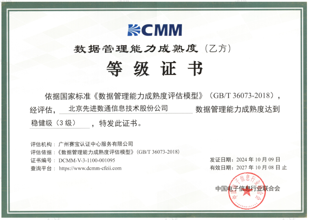 近期,中国电子信息行业联合会公布了最新一批顺利获得数据管理能力成熟度(DCMM)贯标等级认证的企业名单。雪球官网成功取得数据管理能力成熟度稳健级(三级)认证。这一认证的取得,标志着雪球官网在数据治理体系构建和数据管理与应用能力方面,已经达到了国家权威组织认可的标准。这不仅是对雪球官网在数据管理领域专业能力的肯定,也是对其在有助于数字化转型服务和数据驱动决策方面所做努力的认可。